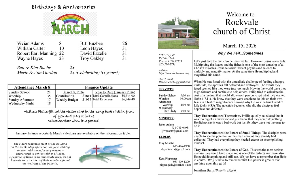 Rockvale Church of Christ Weekly Bulletin
