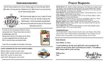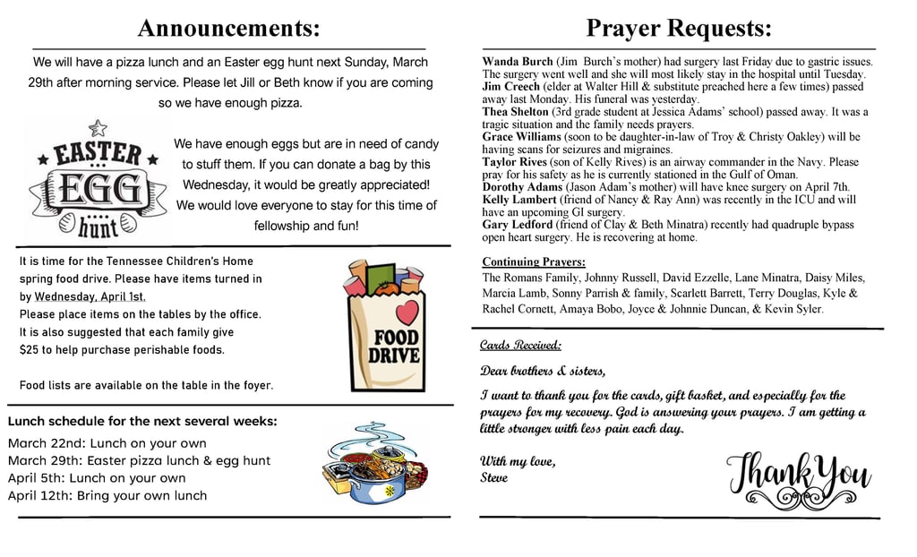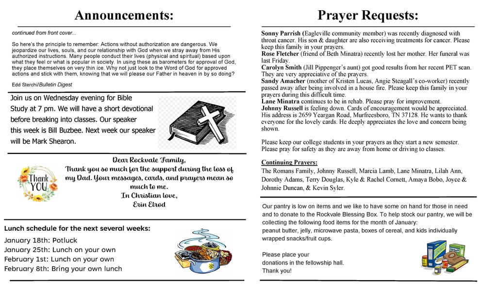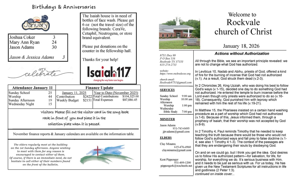 Rockvale Church of Christ Weekly Bulletin